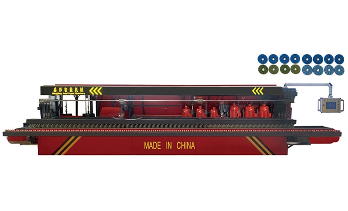 該機采用數(shù)控,配置觸摸屏,變頻調(diào)速,帶記憶功能,磨料帶自動補償,磨頭更換秒吸,可選擇連續(xù)進(jìn)料或間隔進(jìn)料加工,配備電動壓桿,為手、自動一體機, 也可設(shè)置擺動用于加工R圓,可磨削不同尺寸、厚度石材的大小圓邊、法國邊、21號邊、鴨嘴邊、407等各種異形線性,一次性完成粗磨 、精磨和拋光。加工完成后,亮度接近板面亮度。該機結(jié)構(gòu)先進(jìn)合理,精準(zhǔn)度高,效率快,操作方便,維護(hù)簡單,最大加工速度4m/分鐘,機械正常使用相當(dāng)于正常石材加工15個工人的工作量,并且杜絕出現(xiàn)人工加工時產(chǎn)生的工藝缺陷。